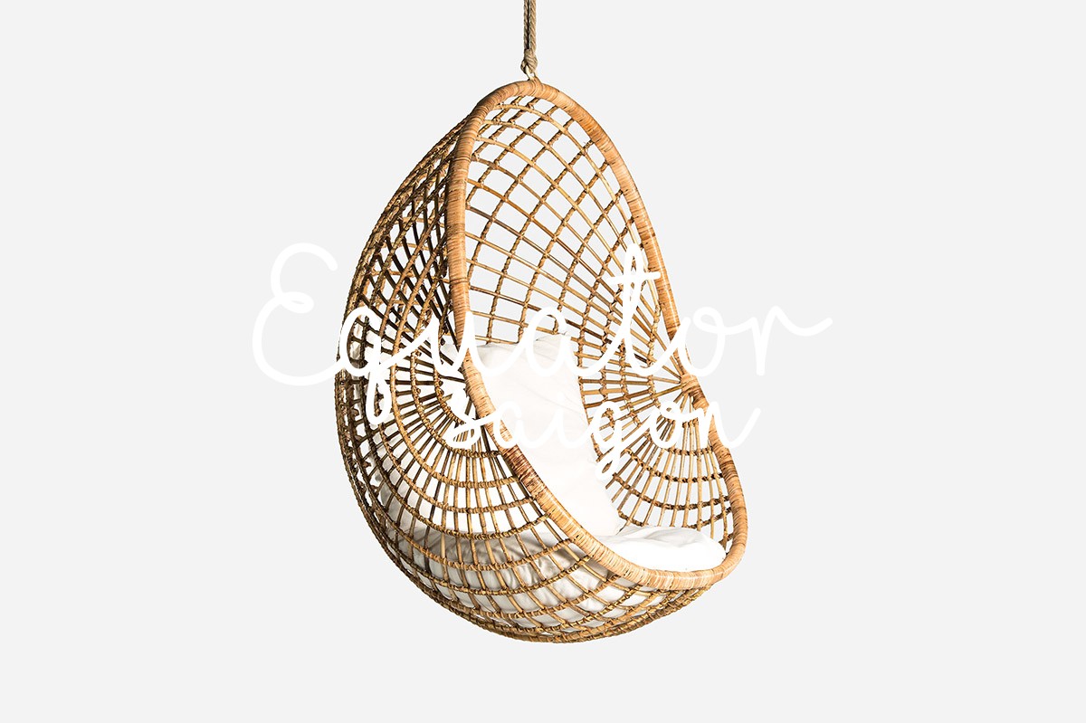 Love this pod chair. Who would not want hang around in this chair on a lazy Sunday. Made from rattan with skin this chair can be used under cover but not full weather proof.