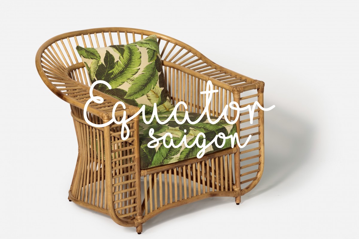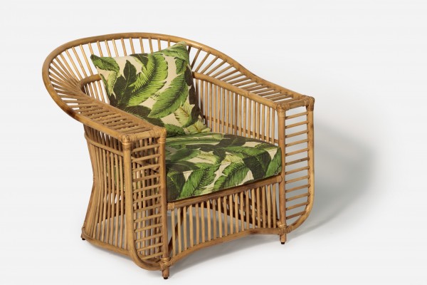 "Rattan finish: Tobacco Cushion: Natural Linen Banana Leaf Fabric